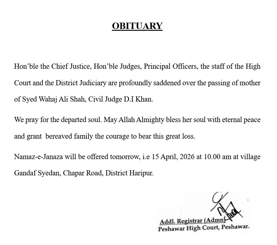 Mother of Mr. Amjad Zia Siddiqui, DSJ/Judge Accountability Court, Peshawar has passed away...